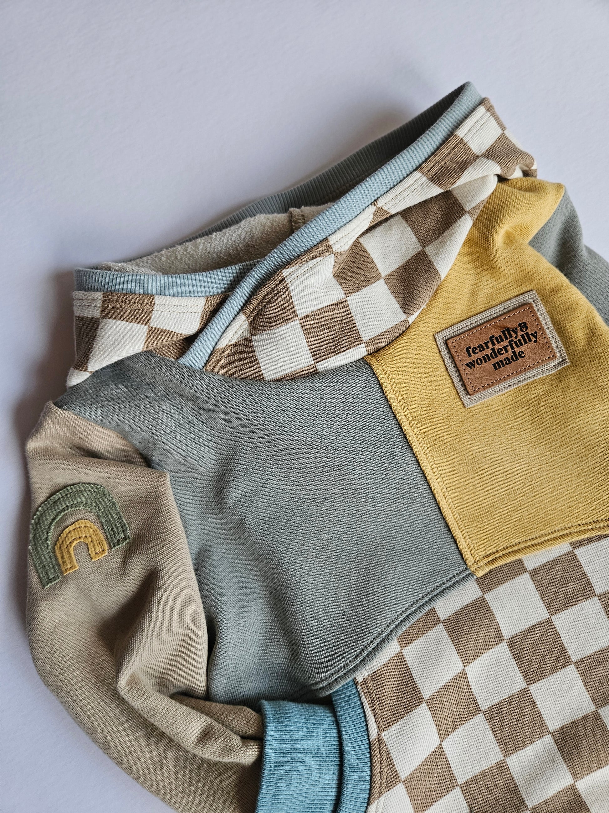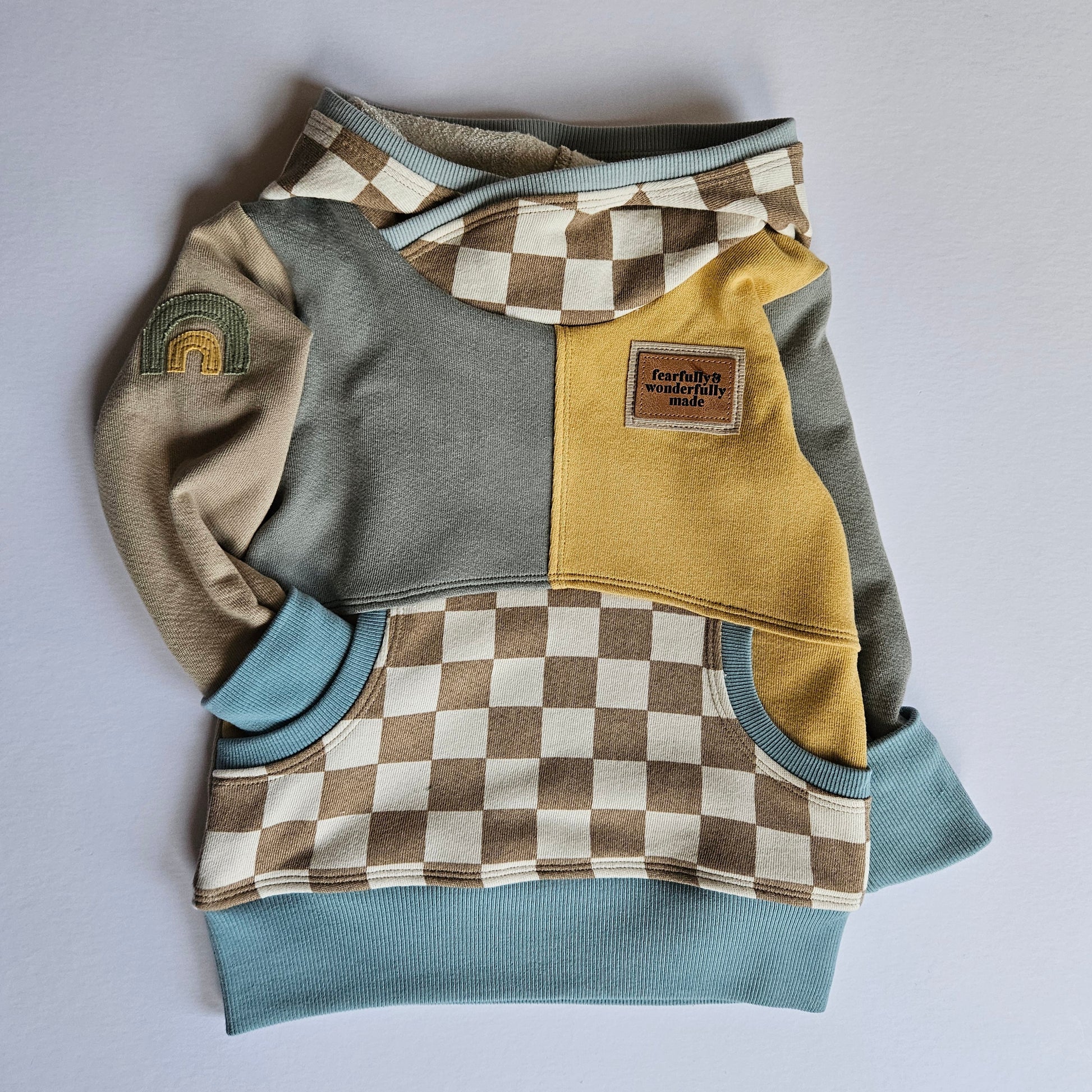 Uniquely designed to fit a long range of sizes, this hoodie will fit for years to come! Fold the cuffs and waistband up when on the smaller end of the size range and unfold them as the wearer grows.